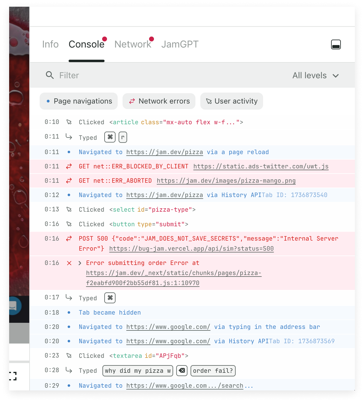 PS – Want to hear how this feature actually saved us 8 hours of engineering time yesterday? Video below, and here’s the actual Jam of the bug in question.