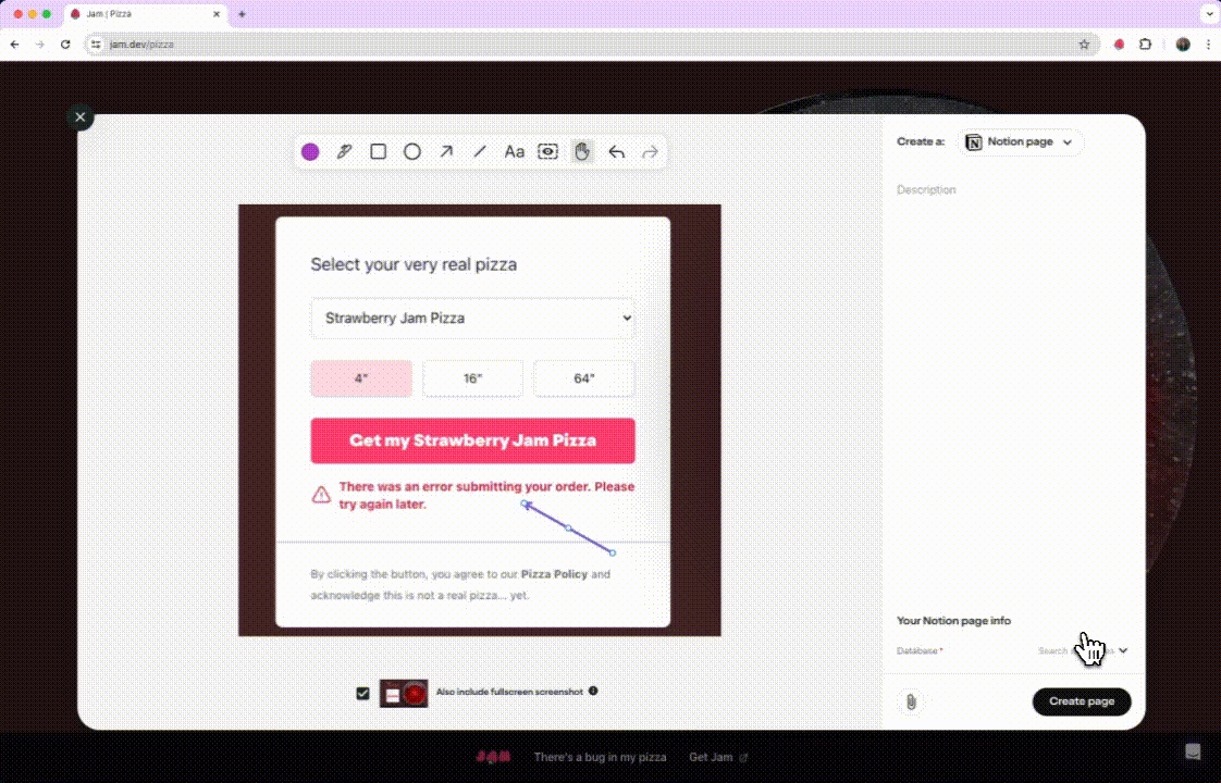 Click "Create page" and once Jam creates your Notion page, it will automatically open in a new tab.