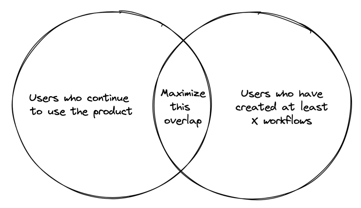Don’t settle on one core action. Look at other core actions in your product. Maybe there’s a stronger indicator than just the number of workflows created in the first week.