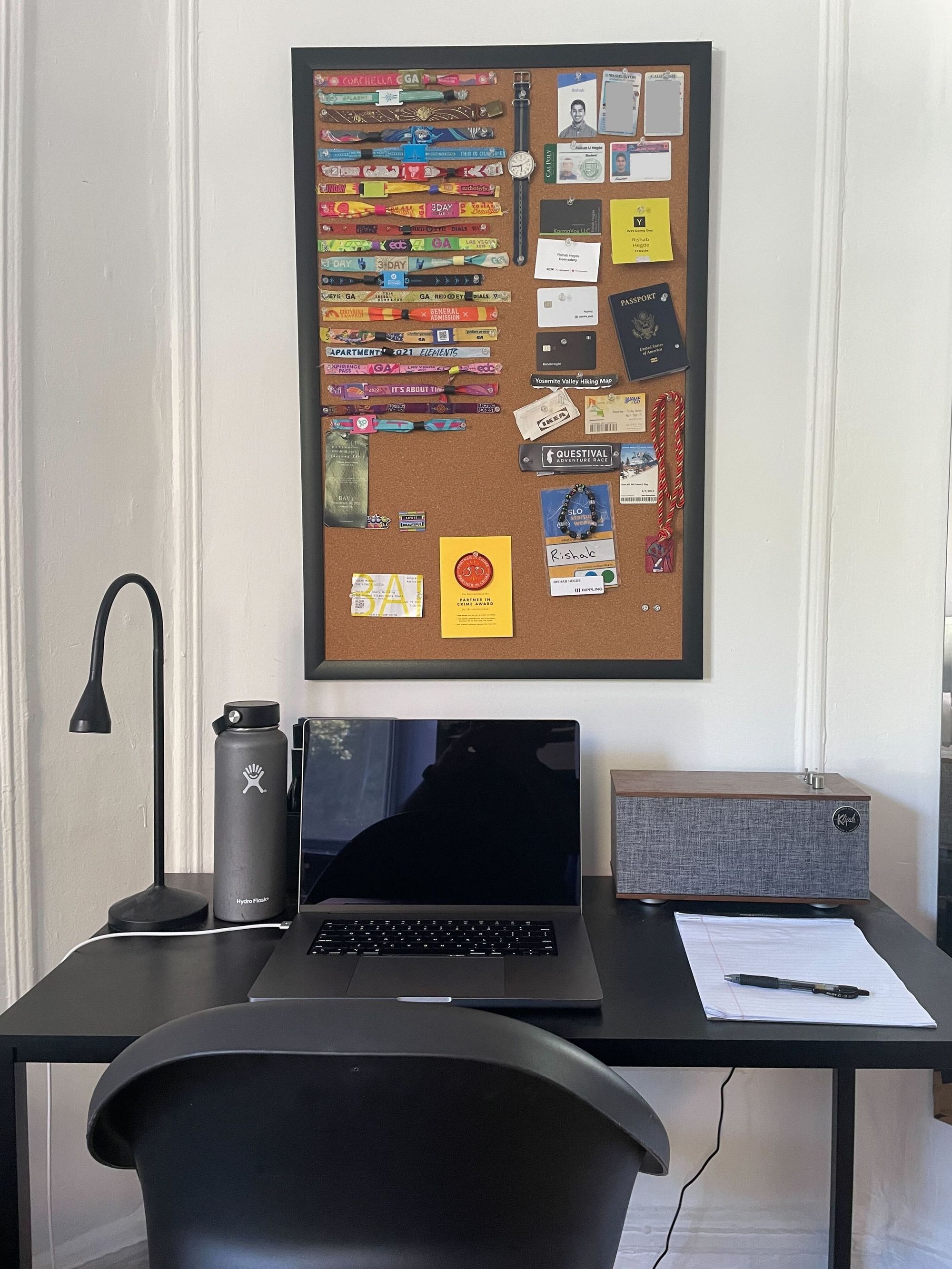 I used to need a mechanical keyboard, multiple 60 Hertz 4k monitors. And then once I got my M1 16 inch Macbook I just stopped. I felt I didn’t really need anything. I needed AirPods. At home, I have these really nice Stanmore speakers on my desk that I love using. I love having a little legal pad, where I can jot down notes with a pen and paper, but nothing really crazy.