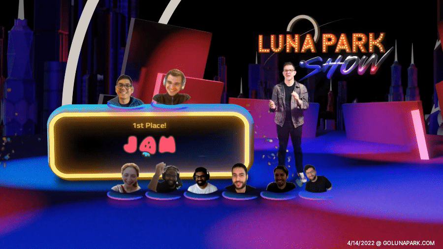 For those occasional big team social events, we play Luna Park. It's a live game show for your team that's fast paced, engaging, and hilarious. Remote social events tend to be awkward, but this one is purely awesome.